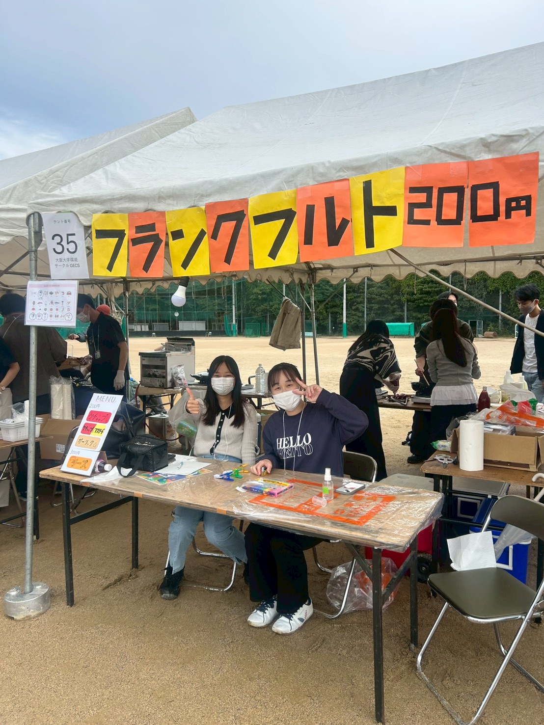 今年度は模擬店でホットドッグ販売、屋内企画としてSHERRY班のフリーマーケット、花咲か兄さん班のハーバリウム販売を行いました。