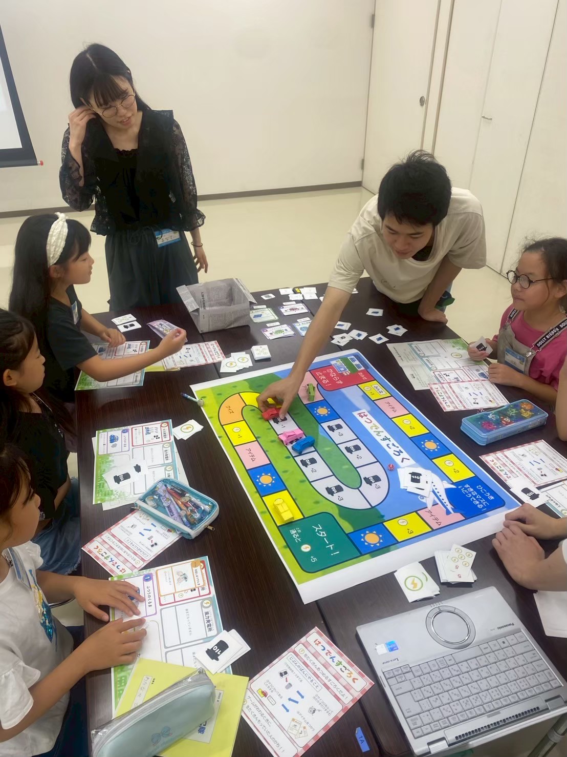 授業の後はすごろくゲームをして、車、電車、徒歩の3種類の移動手段の良いところと大変なところを学びました。国名小学校の子供たちや先生方、協力してくださった皆様、本当にありがとうございました。