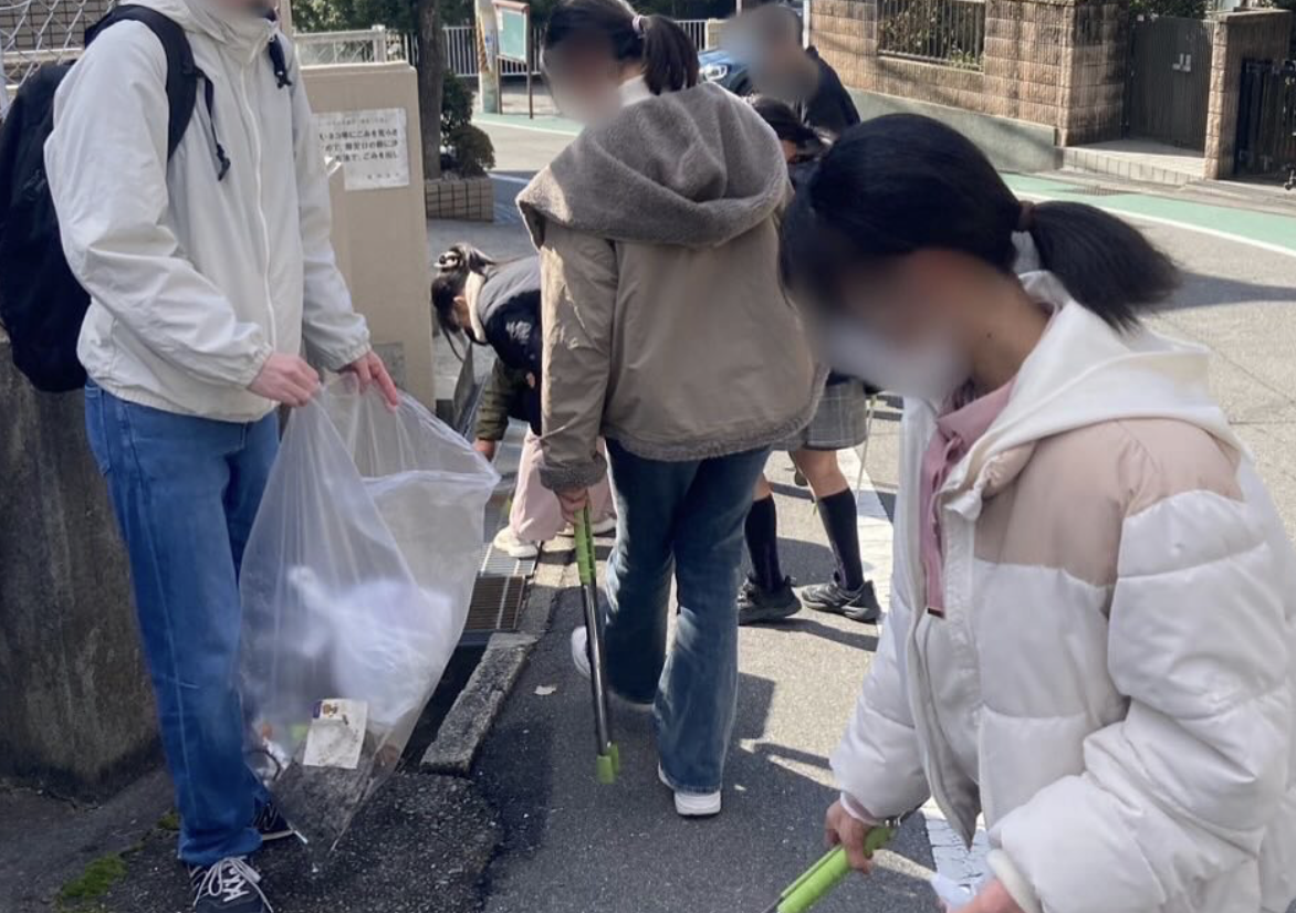 後半では実際に小学校周辺のゴミを拾いました。どのような場所にゴミが多いか、なぜその場所にゴミが多く捨てられているかを考えつつ楽しく話しながらゴミを拾うことができました。