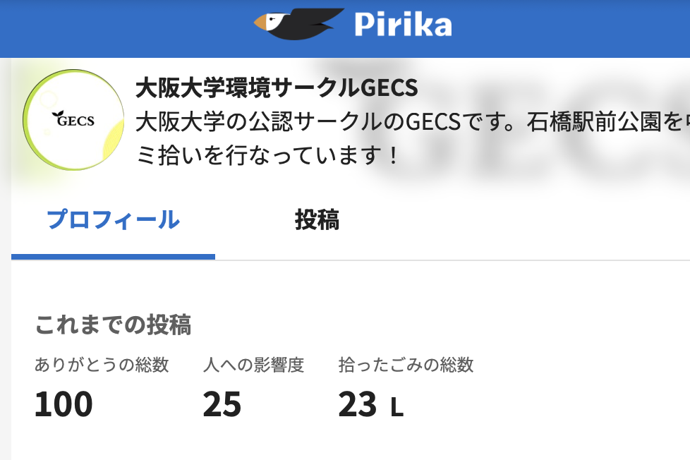 2026年よりゴミ拾いSNS「Pirika」を使ったゴミ拾い記録の世界への発信を開始しました。発信を通して、ゴミ拾いの活動状況の見える化に貢献しています。 |