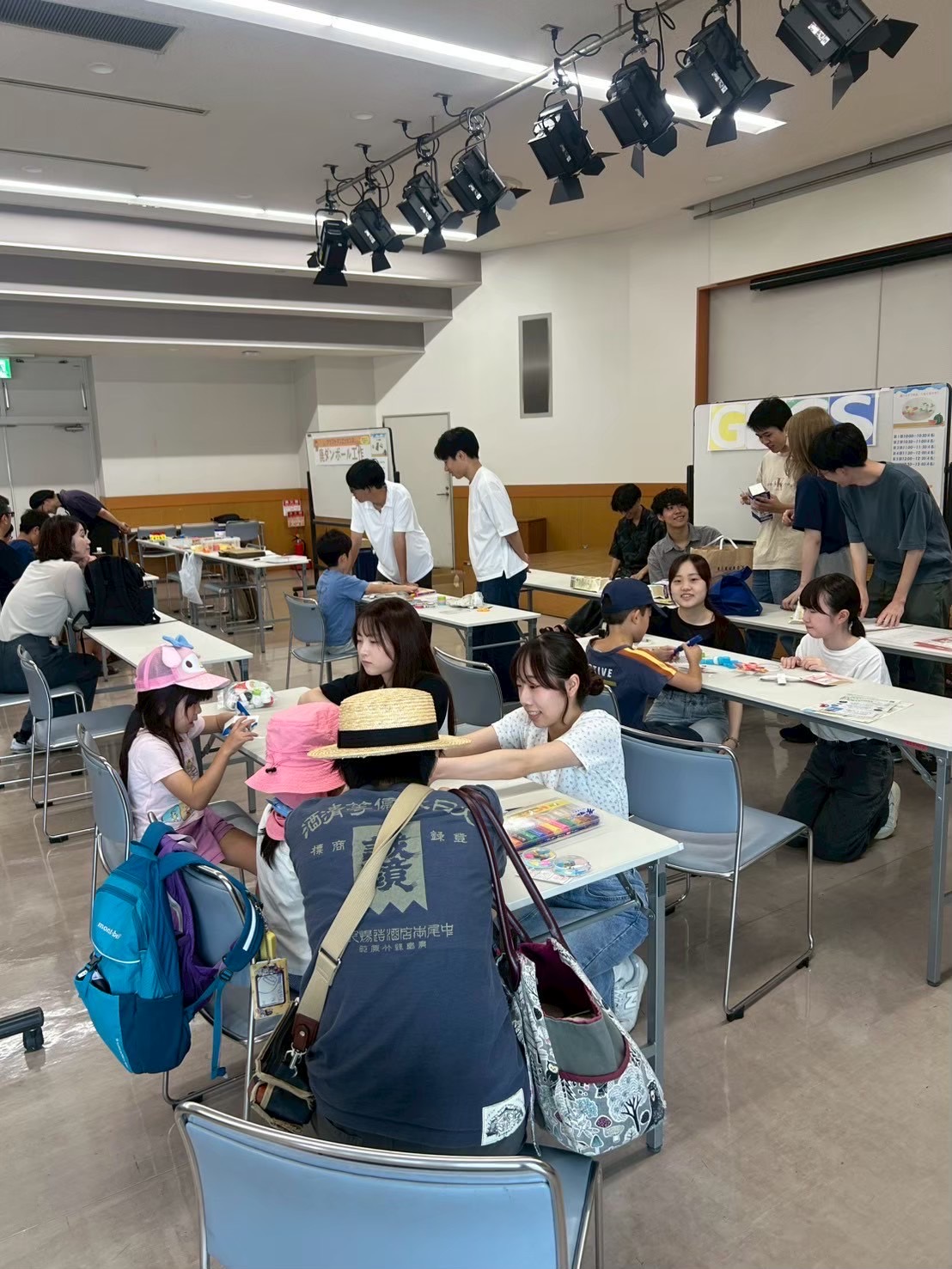 キリで穴を開けたり、紙パックをハサミで切る工程で少し難しい部分もありましたが、みんな自由に楽しそうに工作していました。GECS側としては、1回生の子たちが初めてワークショップに参加しました。子どもたちとおしゃべりしながら楽しく活動できました。